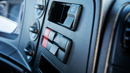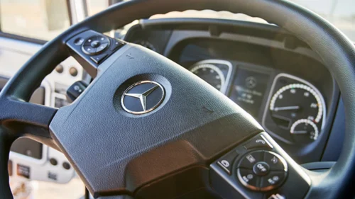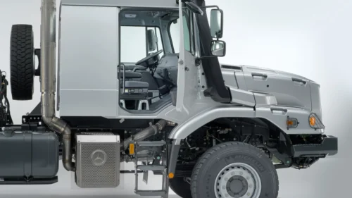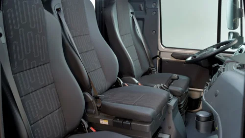 Controls and instruments are ergonomically positioned in line with tried-and-true Daimler standards, and will be instantly familiar to many drivers. The cab’s windshield extends down low, granting an excellent view of surroundings from the driver’s seat.