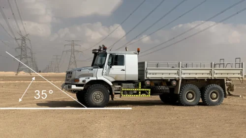 High ground clearance and compact outer dimensions mean Zetros can climb inclines of up to 35 degrees. Moreover, it can maneuver through deep water and mud, thanks to a fording depth of up to 0.8 meters.