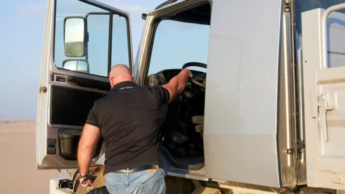 The Zetros has lower cab floor and less steps compared to cab-over-engine types, contributing to an easy walk through of the cabin, and less dangerous entry and exit of the cabin.