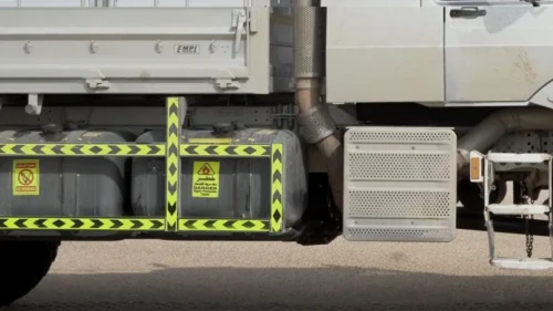 Separable tanks for more control of fuel availability on remote expeditions. Tanks can be individually filled and emptied or connected for long routes . If one of it is broken, the Zetros continues driving with the second one.