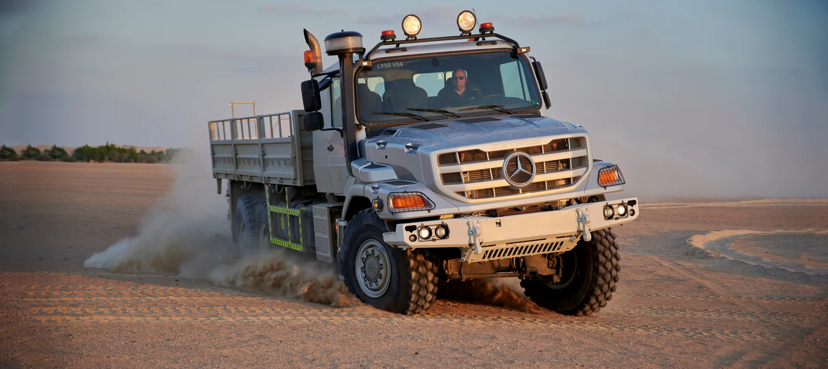 The Zetros features several differential locks in the Zetros: at the front axle, rear axle, between front and rear axles plus between rear axles 1 and 2 (inter-axle locks). Differential locks ensure that distribution of power to all wheels is uniform – particularly essential when driving on off-road terrain or sand. The differential lock is activated by a rotary switch on the instrument panel and displayed on the Driver Information System.