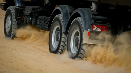 As standard, the Zetros is equipped with tyres of size 14.00R20 or 395/85R20. One huge advantage is that these standard-size tyres are readily available around the world. Besides these standard tyres, there are also increased tyres 16.00R20 available for the Zetros. The tyres offer a large diameter for high ground clearance and extreme traction. As an option, the tubeless tyres can be equipped with the Hutchinson run-flat system.