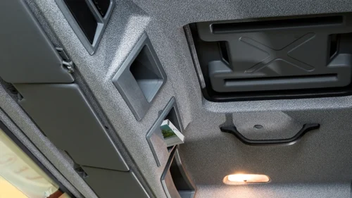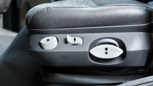 The driver air-sprung seat with its ergonomic design and multitude of adjustment options – including the vertical damping rate – offers supreme comfort for driving.