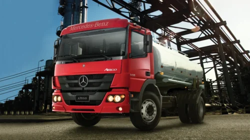 The Atego is available with drum brakes all round. All brakes are equipped with anti-lock braking system (ABS) as standard, plus a dual-circuit pneumatic braking system operating at 10 bar of constant pressure. It ensures vehicle drivability even in emergency braking situation. The powerful engine brake “Top Brake”, an exclusive Mercedes-Benz feature and offered as standard, sensibly improves braking power, providing fuel economy and reduction of wear in brake components and tires.