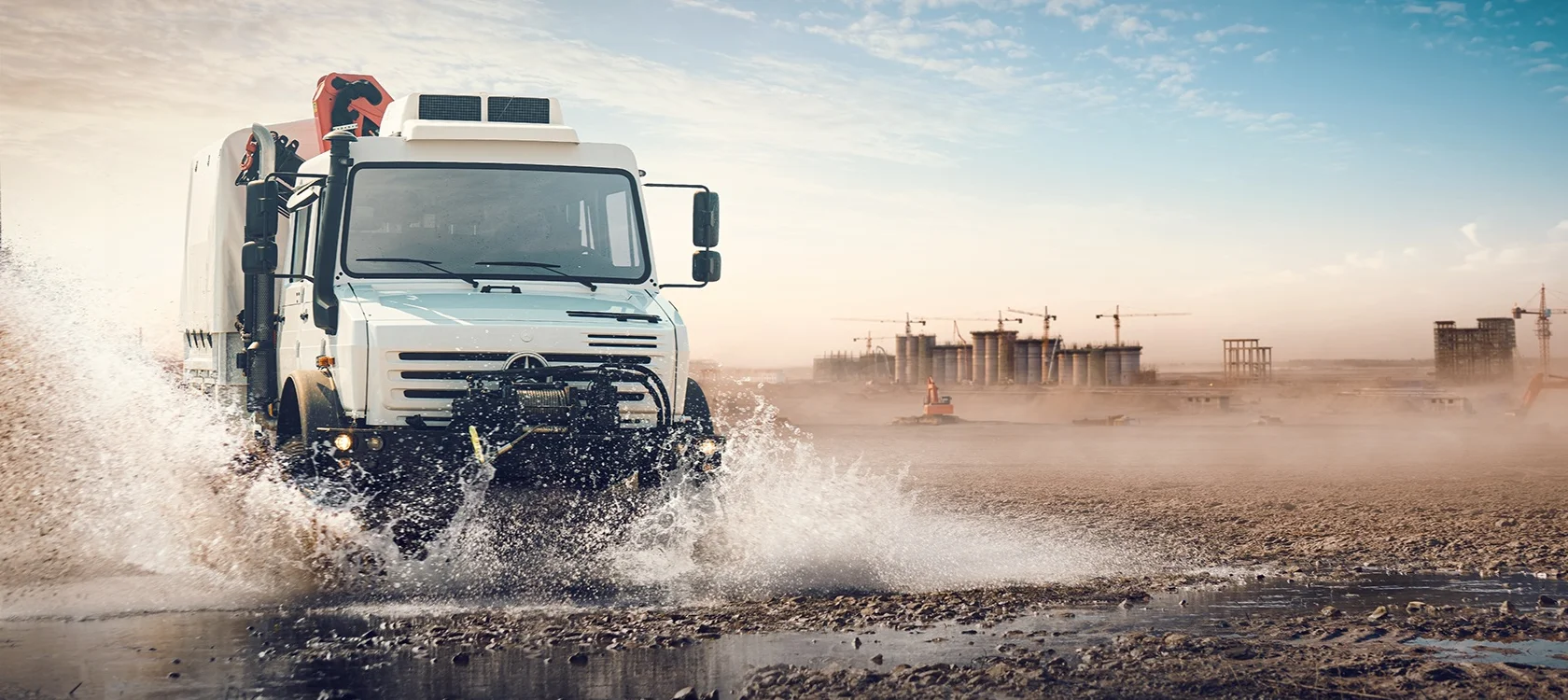 The Unimog is your ideal work and transport vehicle for even the most arduous conditions. Its exceptional off-road capability is made possible through a host of technical features, such as the flexible ladder-type frame, all-wheel drive with differential locks on both axles, and the tyre pressure control system. With this, nothing can stand in the way of your perfect off-road operation. For instance, as an emergency vehicle for disaster relief work, or for maintenance tasks in the power supply industry. It gets through terrain other vehicles can’t even reach – the Unimog U 4000/U 5000.