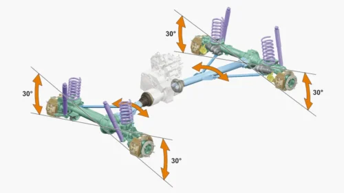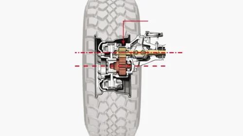 • Axle tube and differential are clearly smaller than on a truck and are situated above the wheel centre